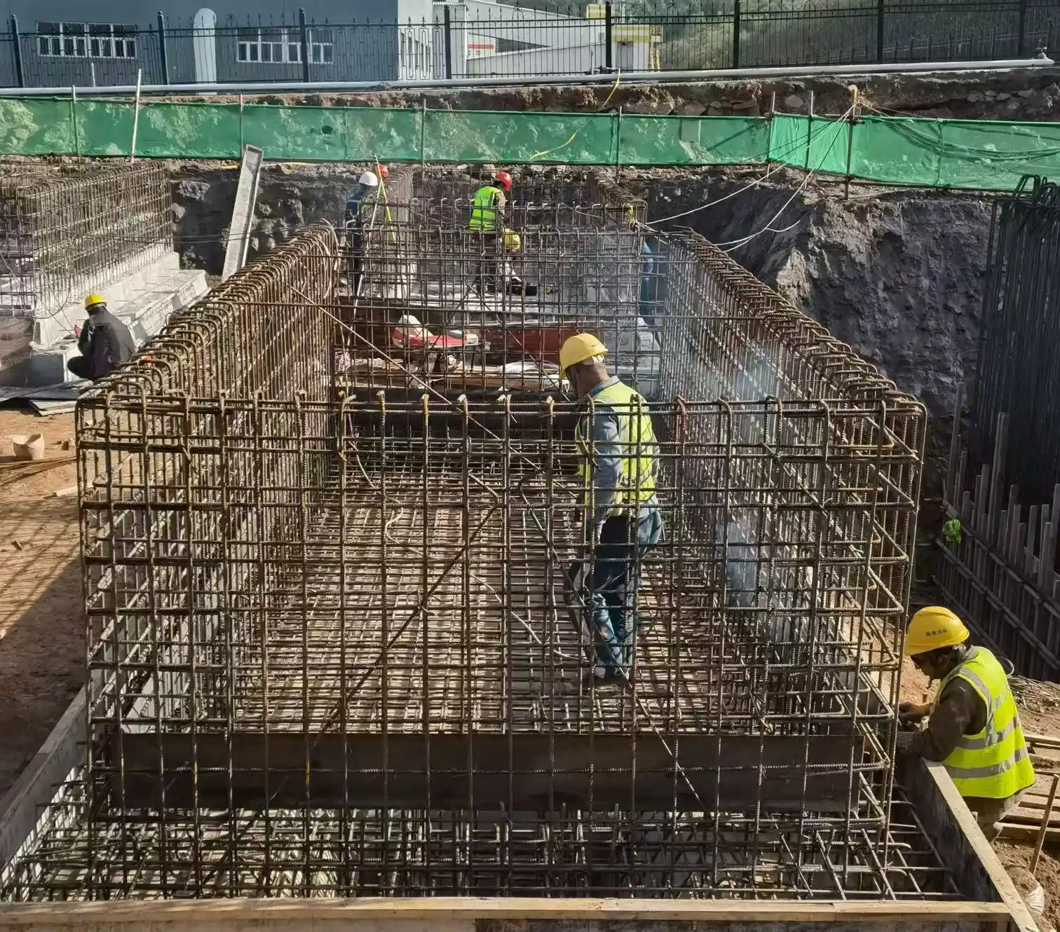 在有用应对天气影响的同时,项目团队配备挖掘机、吊车等10余台套装备,周全铺开作业面,#1、#2飞轮舱基础实现从放线验收到钢筋加工、绑扎全流程闭环,飞轮及电池PCS一体机基础完成钢筋绑扎、止水板焊接、模板支护及基础浇筑,#3、#4飞轮舱基础完成墙模板支护、螺栓预埋、举牌验收及基础浇筑有序推进。