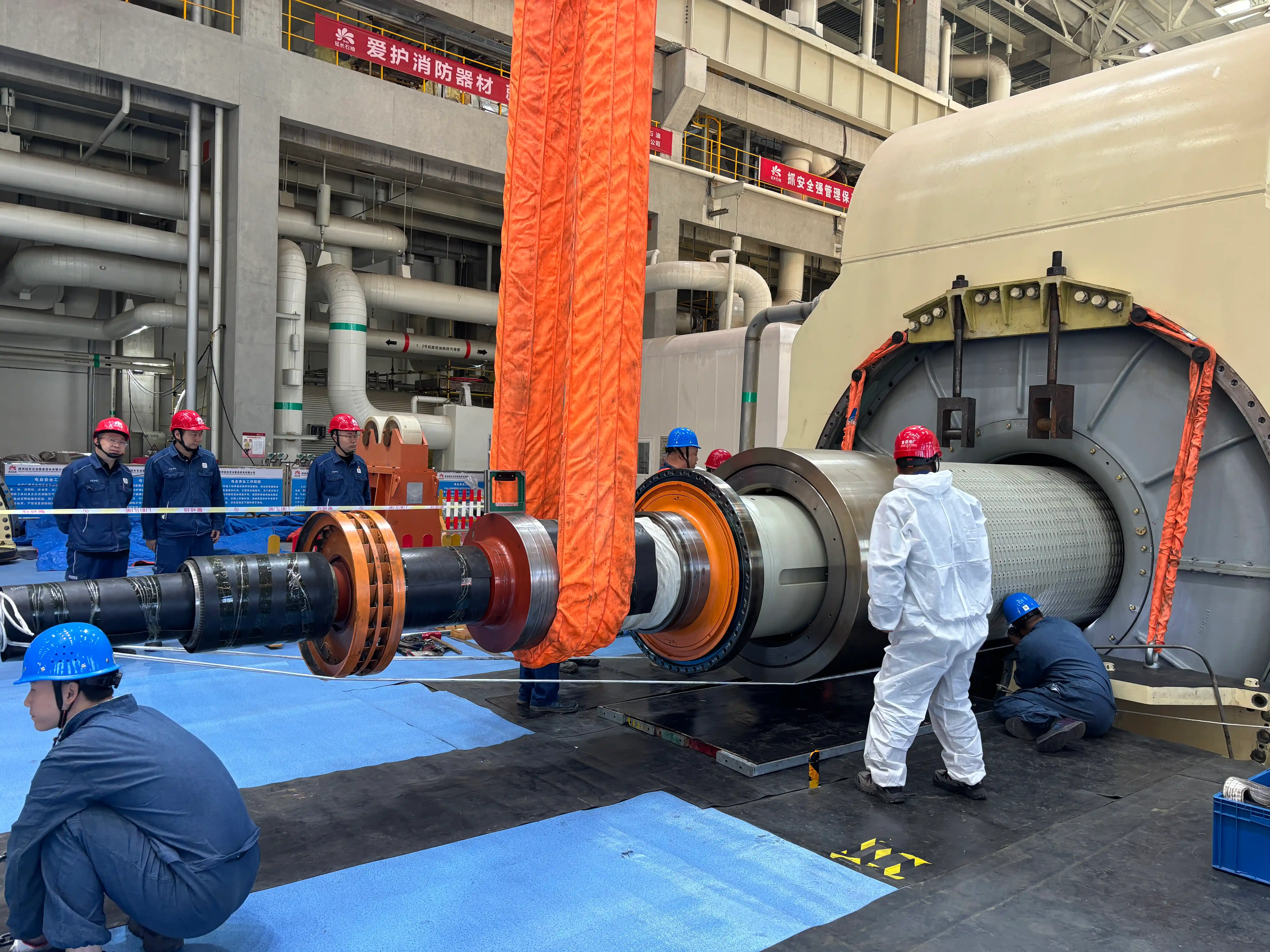 日前,电力运营承揽的集团外重点项目延伸富县电厂#2百万机组磨练迎来要害节点,重达104吨、长达15.7米的发电机转子一次平稳抽离定子内膛,精准落位于专用支架,标记着此次B级磨练取得主要阶段性效果。