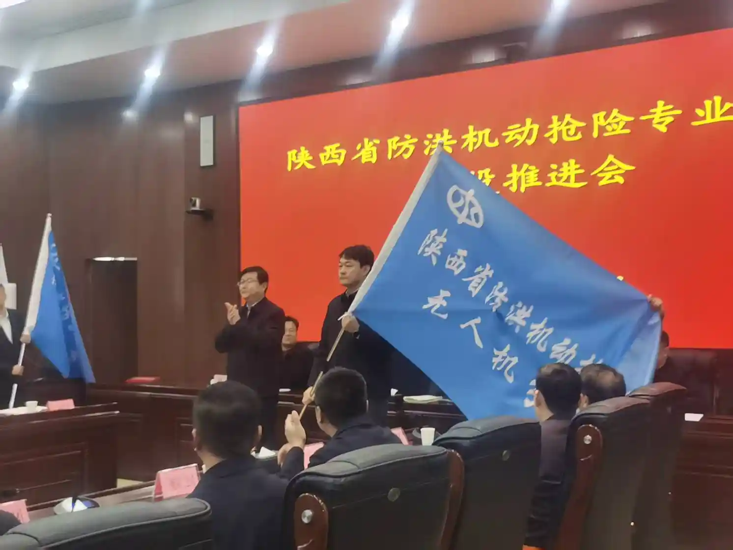 11月26日,省水利厅召开防洪无邪抢险专业步队建设推进会,会上正式为防洪抢险无人机分队——陕西大秦无人机手艺应用有限公司授旗。